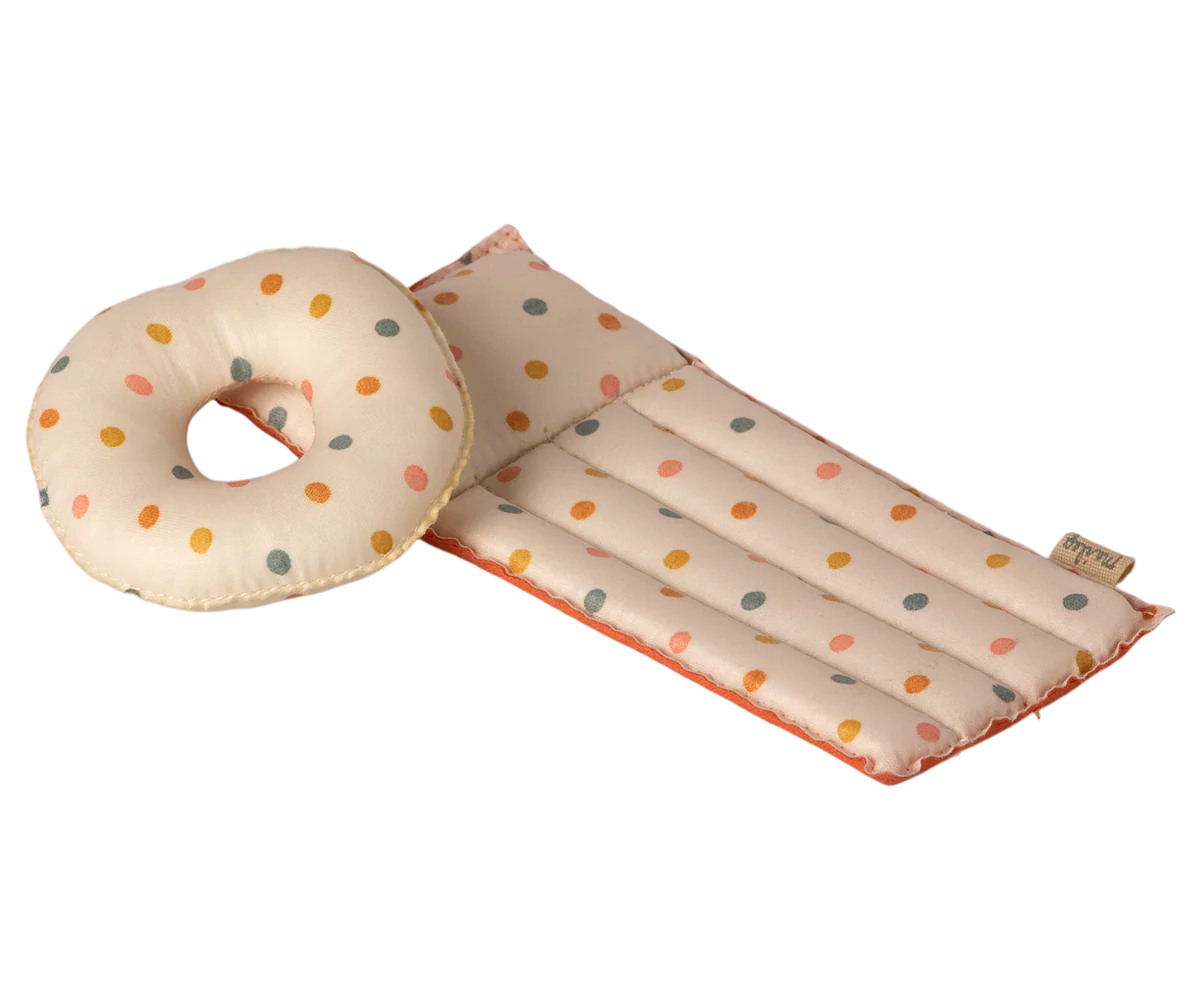 The mice are ready for a day at the beach with this patterned float. Shaped like a mattress, it invites them to stretch out in the sun, imagine gentle waves beneath them and enjoy lazy seaside moments together. Perfect for imaginative play and letting the mice lounge by the water’s edge. Please note, this float is not made for real water use.