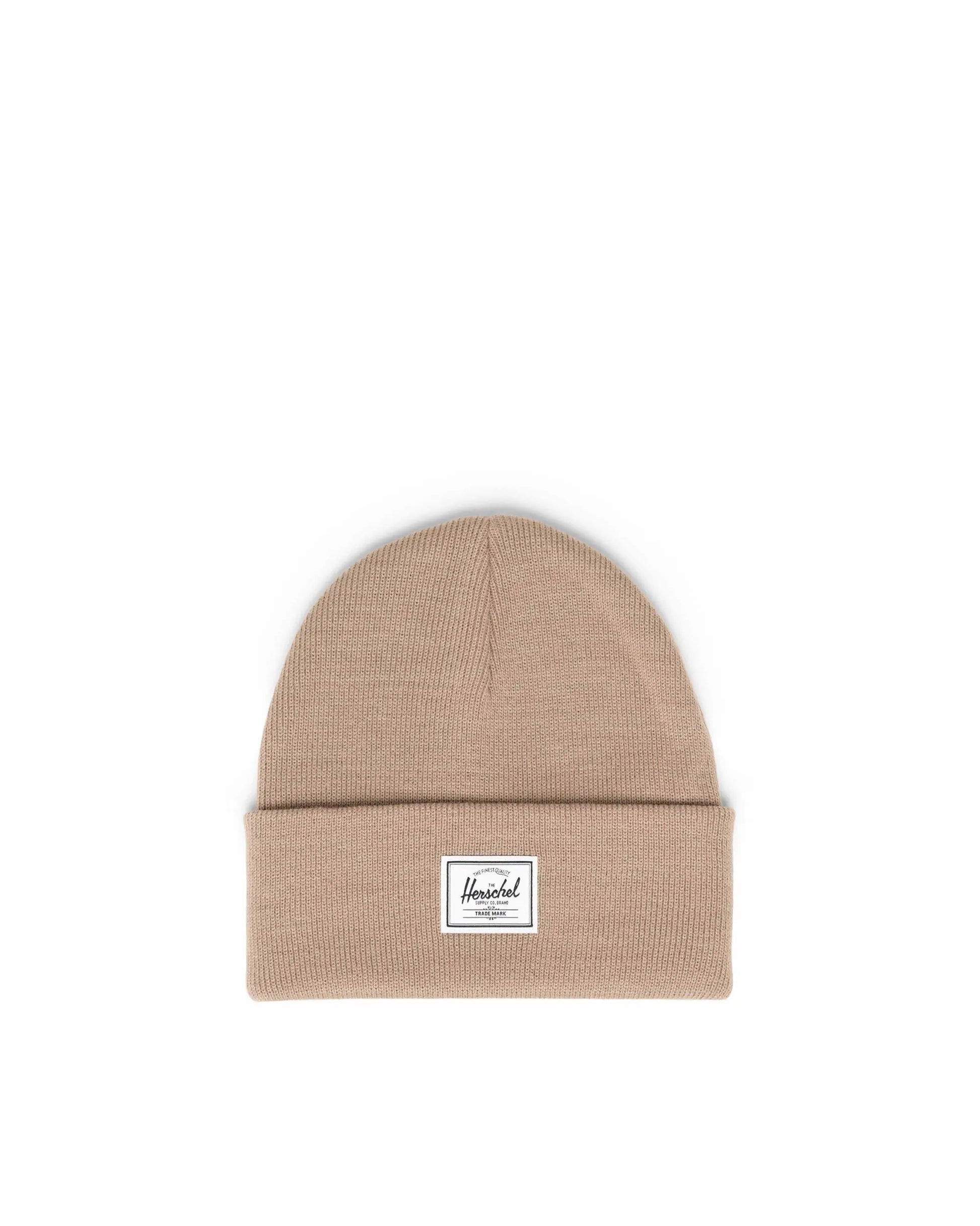 The flat knit Elmer beanie is a quintessential cold weather classic, featuring a medium profile and a wide rollover cuff detailed with Herschel Supply's classic woven label.