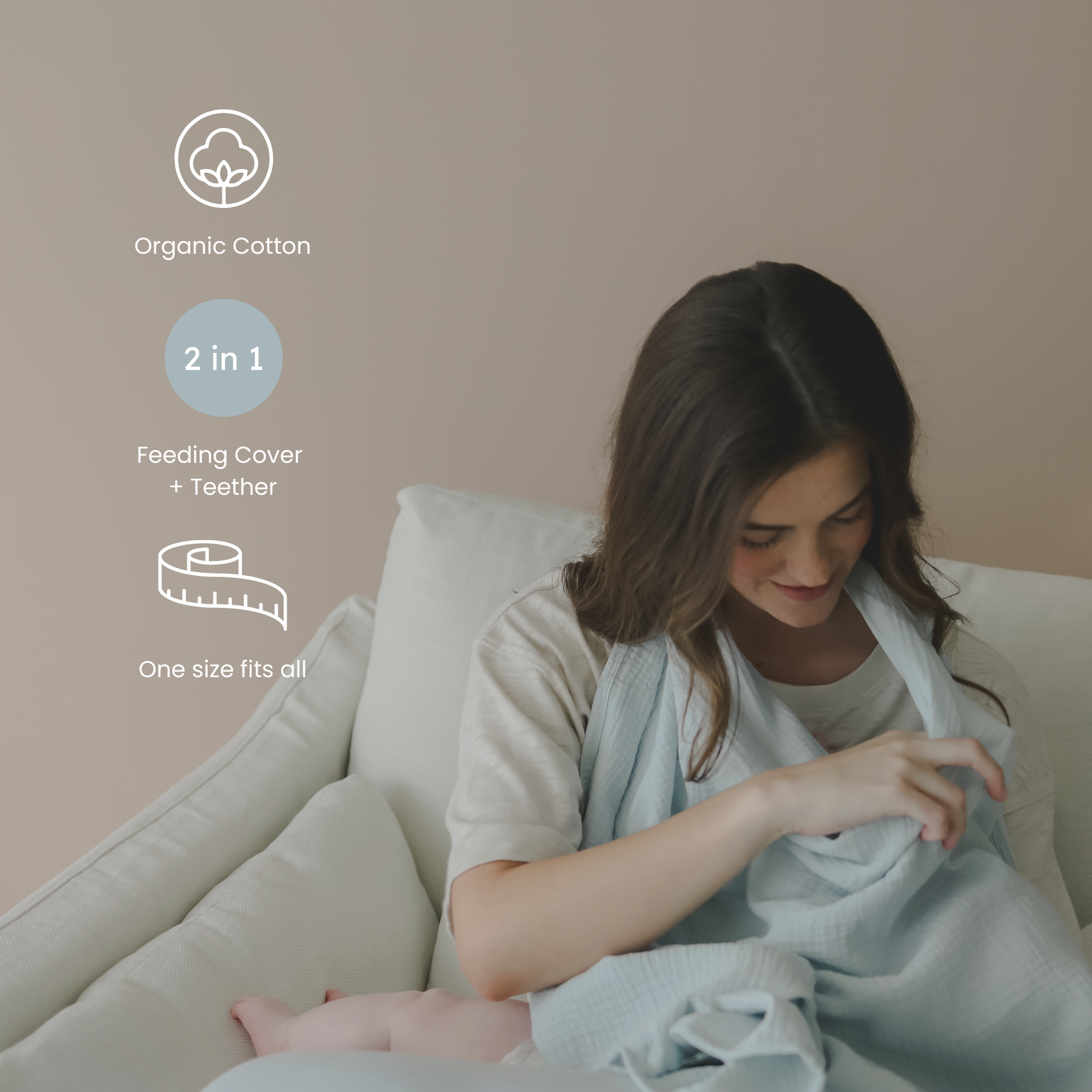 The new Snuggle Me® Nursing Cover provides comfort and privacy while feeding, with an adjustable neckline and a built-in silicone teether for easy 2-in-1 use. Made from our signature 100% organic cotton muslin—soft, breathable, and lightweight on baby’s skin.