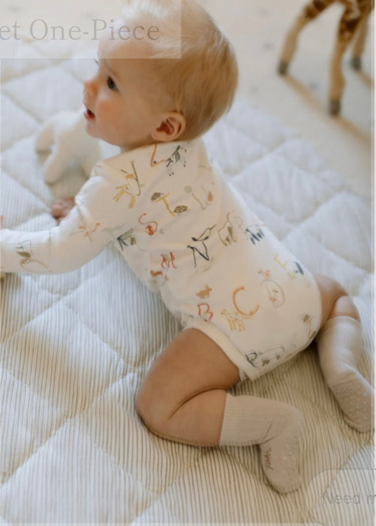 With architectural inspiration in 100% organic cotton, meet our newest One-Piece from My Neighborhood. A tiny front pocket and bottom and shoulder snaps make this playful print easy to wear and 'pehr' with our Essentials Legging.